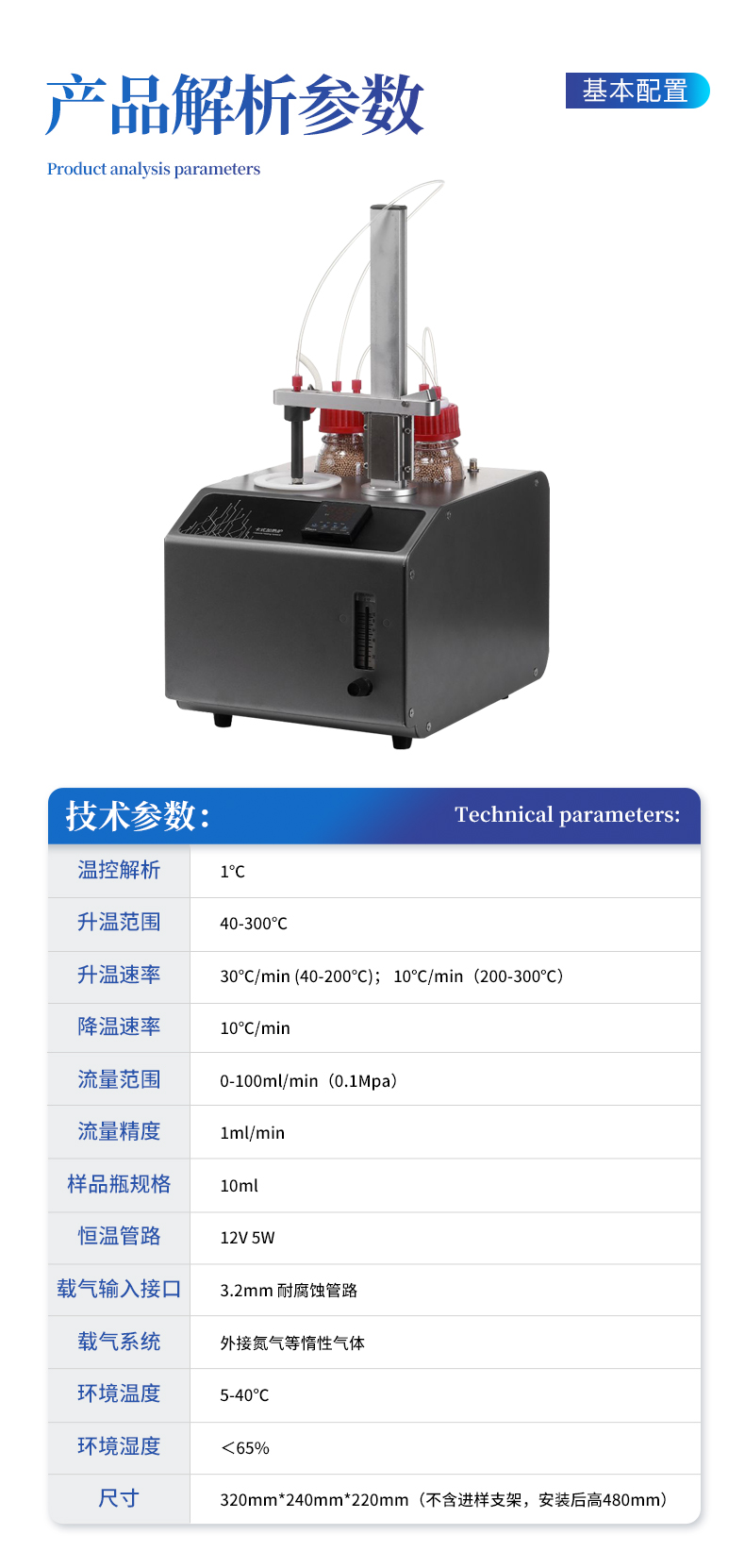 1、10ml樣品瓶:使用四氟與硅膠復合墊片,高溫條件下不會釋放可能產生副反應的物質2、雙干燥瓶設計,有效降低氣源中的水分干擾3、加熱保溫管路,防止水汽在輸送過程中冷凝,提高測試準確性