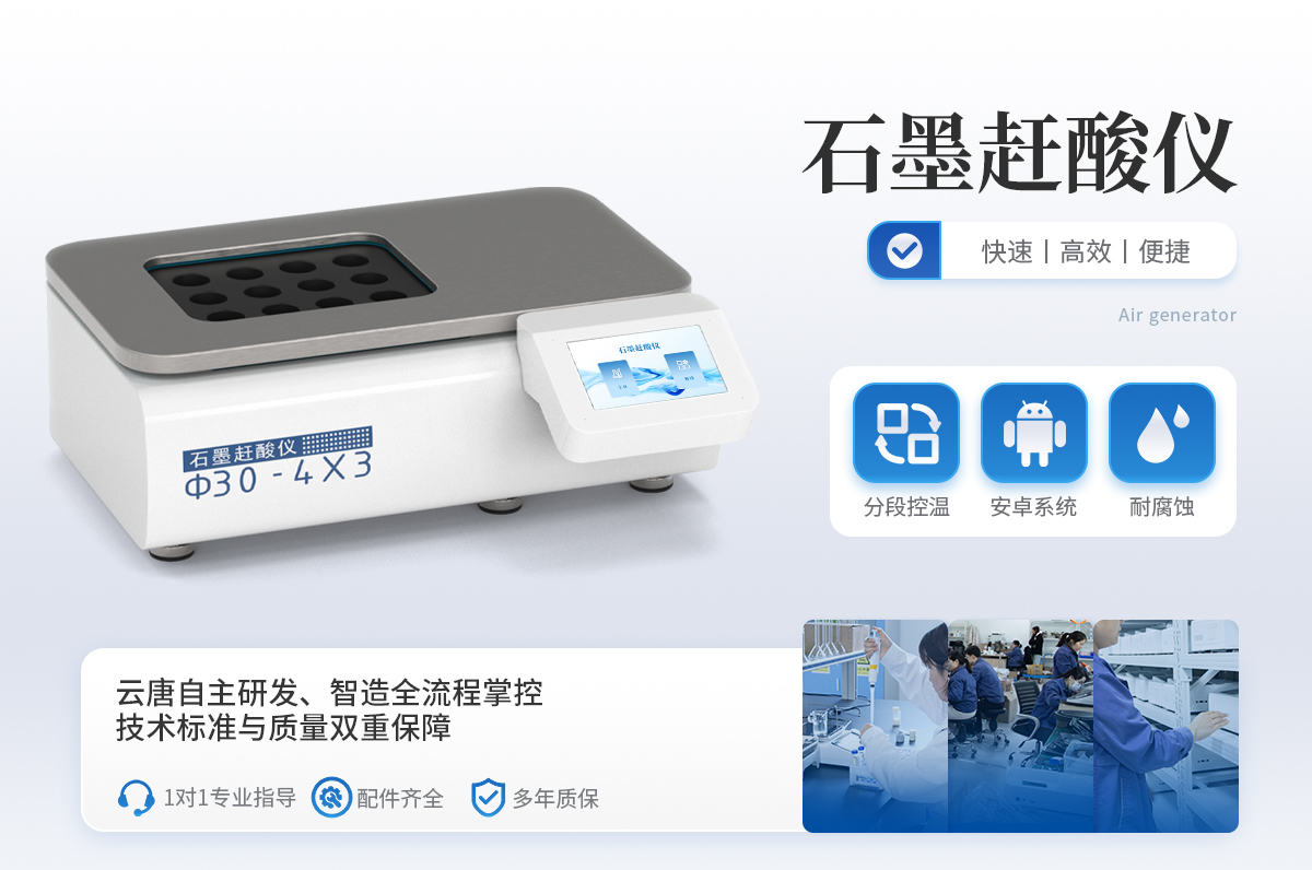 | 使用5寸彩色觸摸屏進行儀器操作,配備安卓操作系統,方便快捷。 | 采用PID 控溫技術,控溫精度高,升溫速度快, 從室溫到260℃僅需25分鐘。 | 分段控溫設置,即可單段升溫,也可多段升溫,設置靈活,儀器將自動按順序完成。更適于易產生泡沫的樣品。 | 采用優質石墨爐內芯,平均溫差較小,樣品效果一致性好,熱傳導效率更高。石墨塊具有特氟龍涂層,耐腐蝕,延長使用壽命。 |