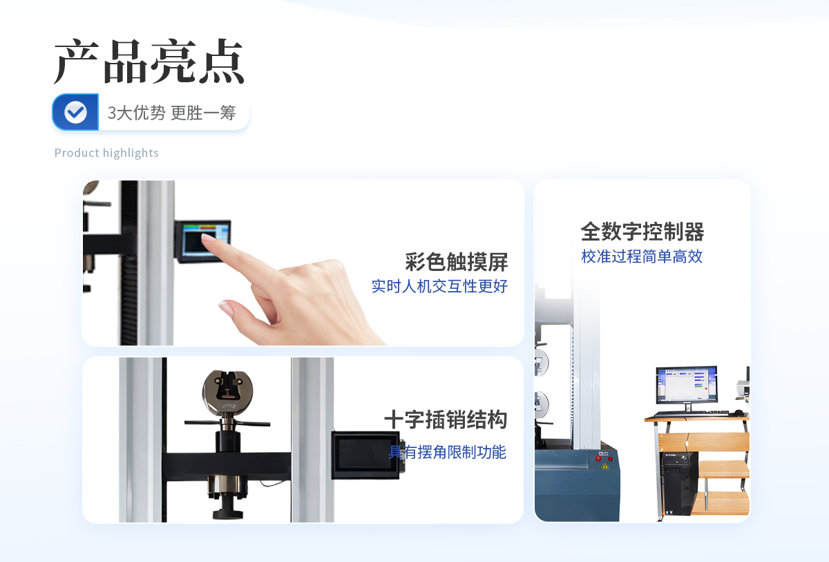 | (1)采用高精度、全數字調速系統及精密減速系統,驅動精密絲杠副進行試驗,實現試驗速度的大范圍調節,試驗過程噪音低、運行平穩。 | (2)可選用萬向節十字插銷結構,一方面便于試樣夾持,保證試驗同心度,另一方面很好的消除了不規則試樣對傳感器的影響。 | (3)Windows操作系統,人性化操作界面,可顯示試驗方法選擇界面、試驗參數選擇界面、試驗操作及結果顯示界面和曲線顯示界面,并可實時顯示各參數曲線,便于試驗數據分析,過程監控。 | (4)可實現試樣裝夾時橫梁快慢升降調整,具有過流、過壓、過載等保護裝置。 | (5)帶打印功能,可直接實現試驗過程的控制及數據的存儲、打印。 |